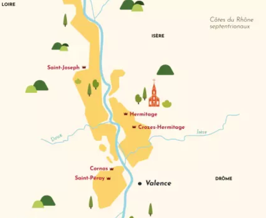 - Hermitage est considéré comme l’un des grands crus des Côtes du Rhône. Ici, les rouges (majoritairement Syrah) et les blancs (Marsanne et Roussanne) s’expriment avec profondeur, structure et long potentiel de garde. Ce cru prestigieux produit des vins d'une puissance et d'une élégance rares.7