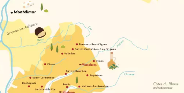 - Vinsobres :Premier grand Cru des Côtes du Rhône méridoniaux, il offre des rouges structurés mais d'une fraîcheur incroyable grâce à son altitude.