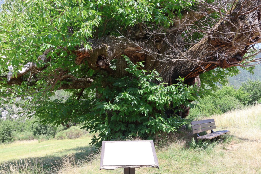 Le Châtaignier des Bellieux est inscrit au répertoire des arbres remarquables de la Drôme et est considéré comme un monument historique. Espèce : Castanea sativa (fam. fagacées) diamètre de la ramure 22m, hauteur 17m, circonférence 9,30m, âge estimé de 500 à 700 ans. Installez-vous sous son ombre face aux magnifiques montagnes pour 🍽️pique-niquer avant de redescendre les gorges et prendre la route de la Vallée de la Roanne.