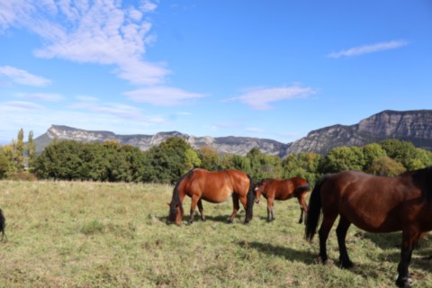 Nos chevaux Vercors de Barraquand sont pour l'automne dans des parcs à proximité de la ferme