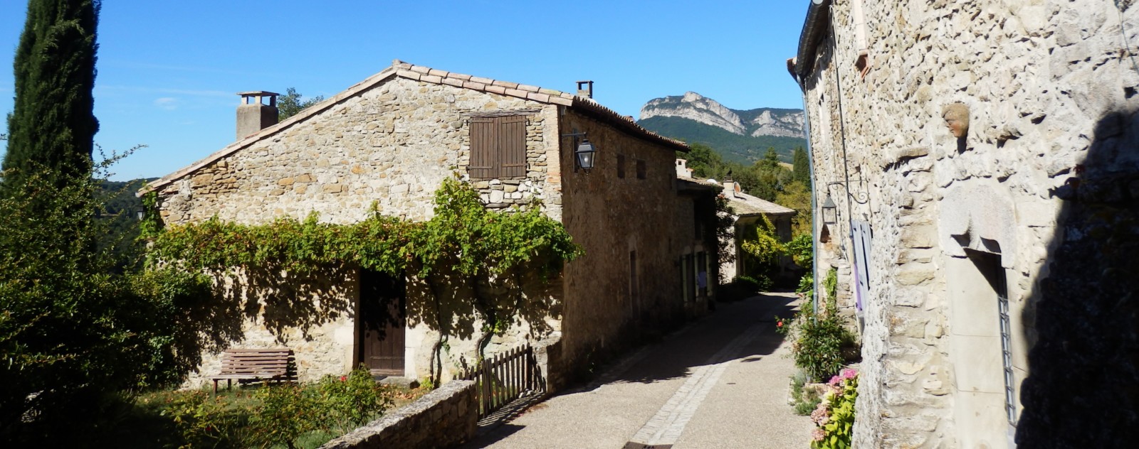 Les ruines encore majestueuses dominent le vieux village et ont eu une histoire fort mouvementée ! Placé sur le Roubion et dominant à la fois l’entrée de la Valdaine et celle de Bourdeaux le château a eu une position intermédiaire utilement exploitée.