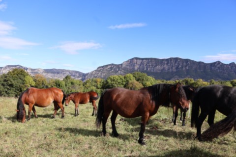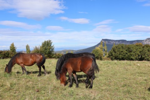 Nos chevaux Vercors de Barraquand sont pour l'automne dans des parcs à proximité de la ferme